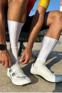 Calze ciclismo aerodinamiche medie per migliorare le performance su strada. La parte del piede è realizzata in Dryarn®® altamente traspirante e batteriostatica, mantiene il piede sempre asciutto ed elimina i…
